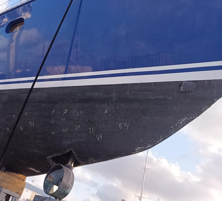 ✔ Hull & deck structure – Checking for cracks, delamination, and moisture intrusion