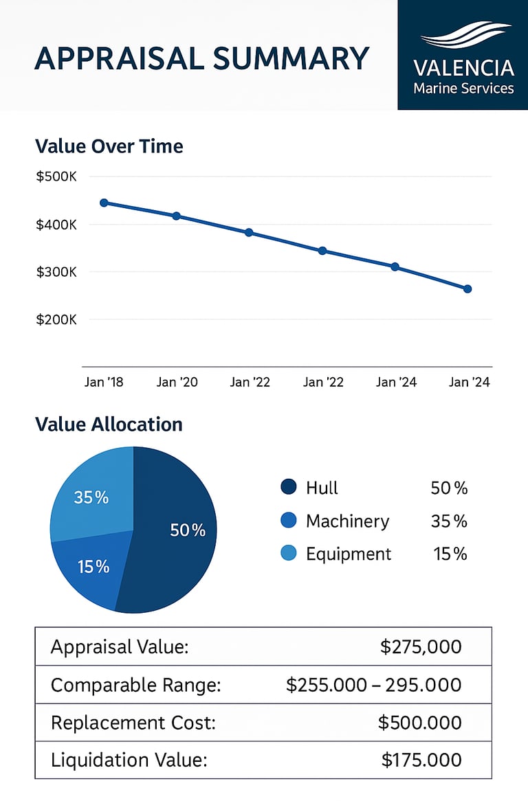 The appraisal always begins with a full review of vessel identity and legal documentation: