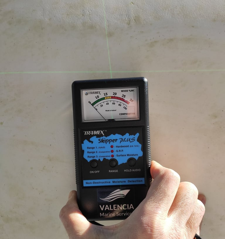 A moisture survey is a specialized inspection used to detect excess moisture within hulls, decks, and structural components, helping identify early signs of water ingress, laminate degradation, or osmosis.